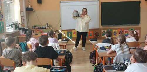 Miłym akcentem była niezapowiedziana wizyta pracownika ds. Oświaty Zdrowotnej i Promocji Zdrowia -Pani Teresy Malinowskiej z .Powiatowej Stacji Sanitarno- Epidemiologicznej w Sierpcu, która chętnie podzieliła się wiedzą dotyczącą promocji zdrowia i doceniła zaangażowanie klasy w edukację zdrowotną