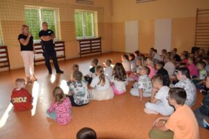 W trosce o bezpieczeństwo uczniów na drogach, w dniu 9 września 2025r. odbyły się spotkania w klasach I-III i IV-VIII z panem policjantem. Uczniowie mieli okazję utrwalić zasady, którymi powinni kierować się uczestnicy ruchu drogowego. W drugiej części spotkania pan policjant odpowiadał na pytania dzieci. Życzymy wszystkim bezpiecznego roku szkolnego w drodze do szkoły, ze szkoły, podczas pobytu w szkole oraz innej działalności pozaszkolnej.