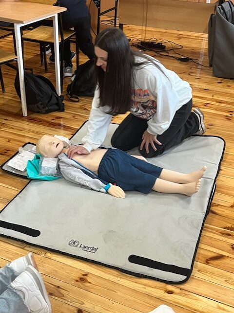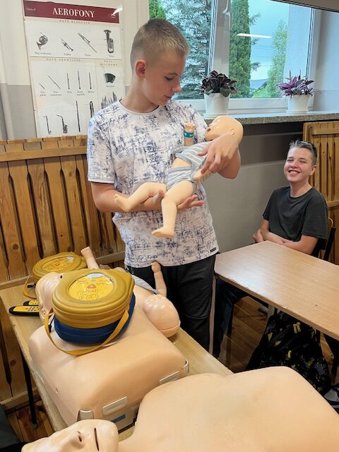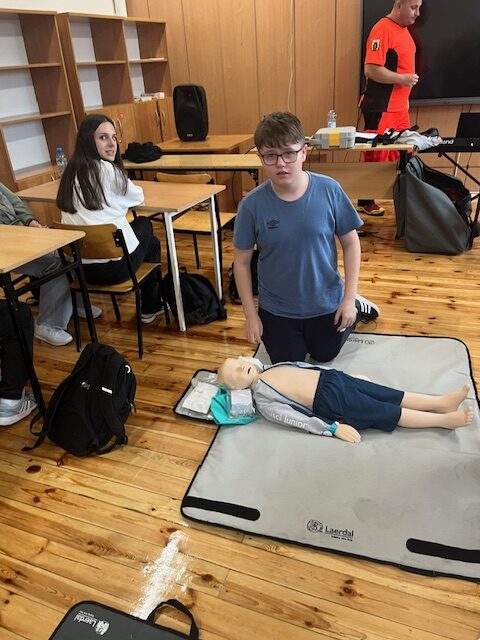 Młodzież bardzo chętnie, śmiało i odważnie angażowała się w wykonywanie ćwiczeń na manekinach próbując radzić sobie w sytuacjach takich jak: resuscytacja krążeniowo-oddechowa, użycie defibrylatora AED, złamania, krwotoki, oparzenia, zadławienia oraz cukrzyca.