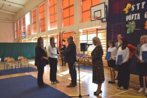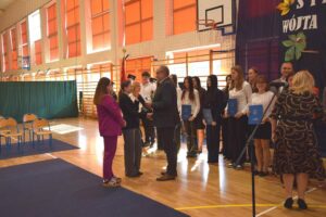 Wyjątkowym dopełnieniem wydarzenia był montaż słowno-muzyczny w wykonaniu uczniów klas VIa i Vb przygotowanych przez P. Joannę Załęgowską oraz chóru szkolnego pod opieką P. Krzysztofa Wojtasa. Symboliczne obrazy, recytacje i inspirujące utwory pokazały, że nauka to nie tylko obowiązek, ale piękna podróż – droga do marzeń, odpowiedzialności i mądrości.