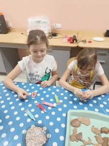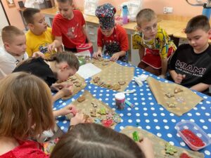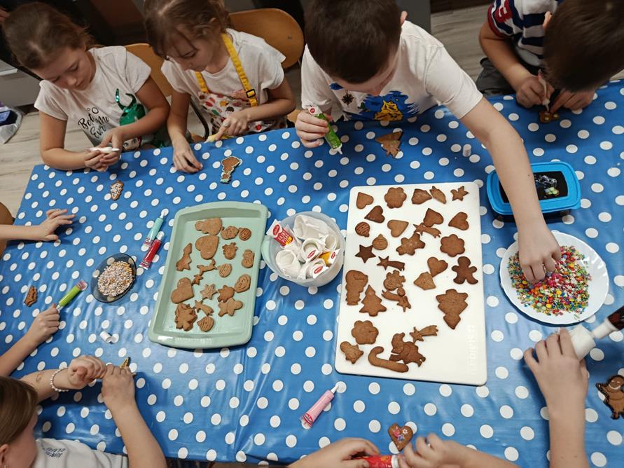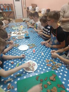 Pod okiem nauczycieli i przy dużym wsparciu rodziców dzieci samodzielnie formowały i wypiekały swoje wypieki. Najwięcej radości sprawiło im dekorowanie pierniczków kolorowymi lukrami, posypkami oraz innymi ozdobami, dzięki czemu każdy wypiek był wyjątkowy i niepowtarzalny.