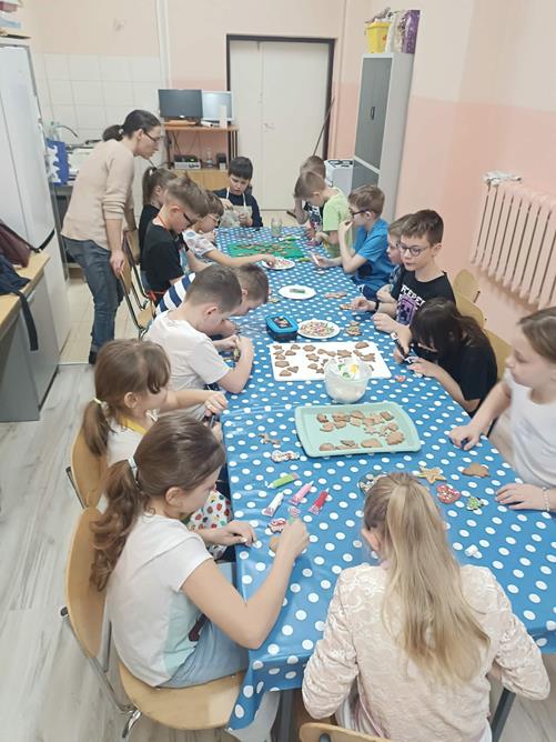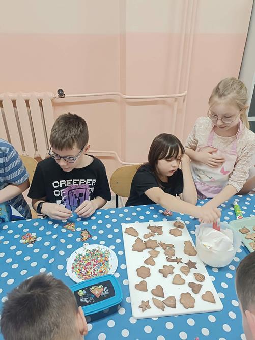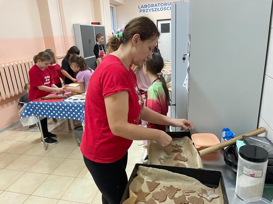 Atmosfera zajęć była pełna zaangażowania, zapachu świątecznych przypraw i uśmiechów. Wspólne pieczenie okazało się nie tylko świetną zabawą, ale również okazją do integracji uczniów i rodziców. Takie zajęcia pozwalają rozwijać pasje i umiejętności praktyczne, a jednocześnie tworzą piękne, świąteczne wspomnienia.