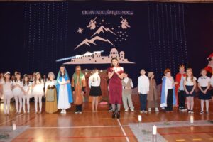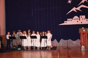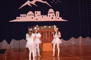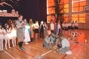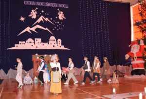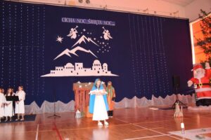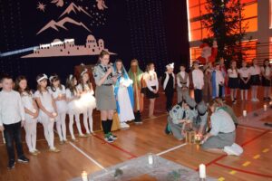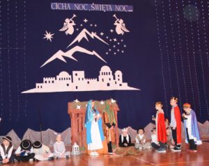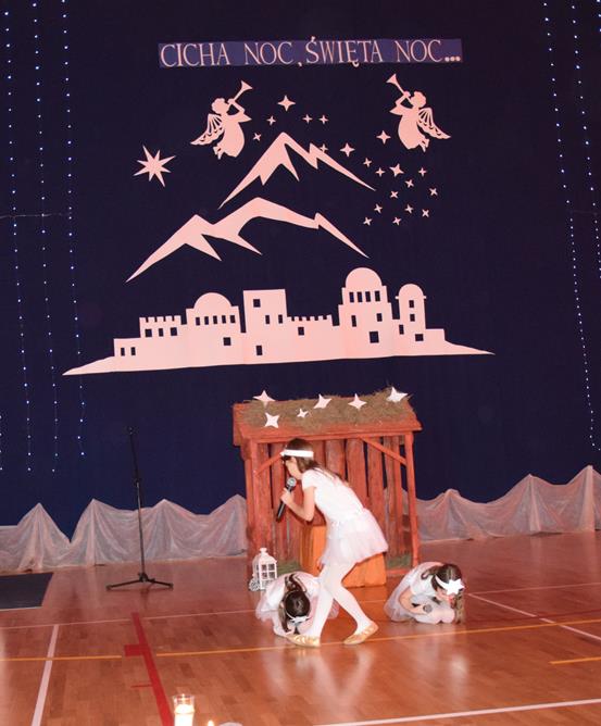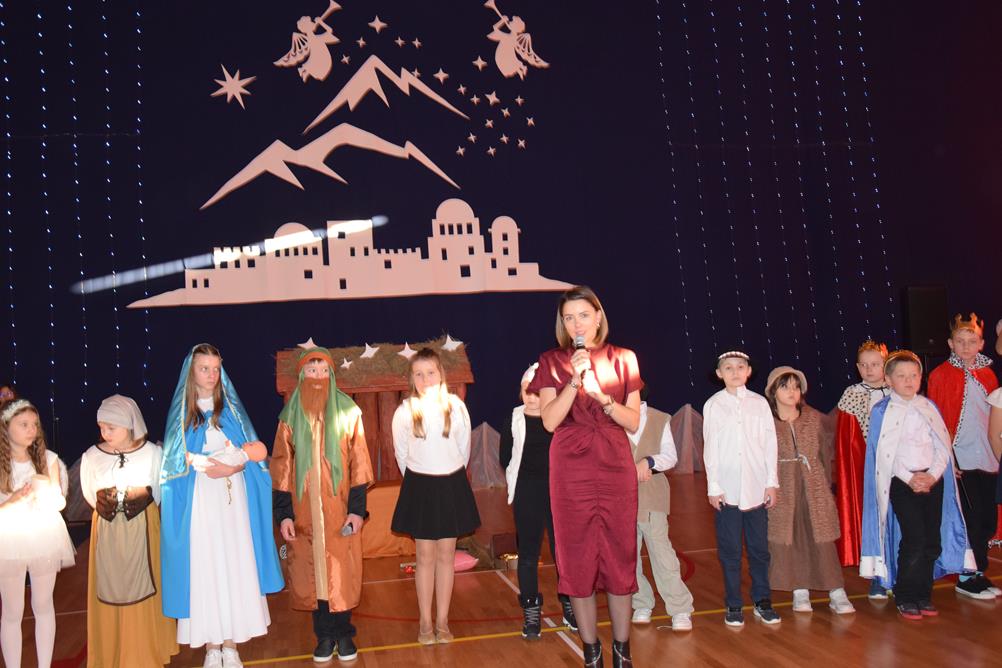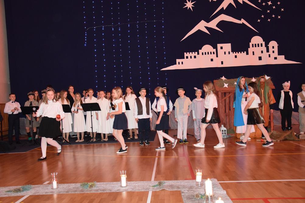 Mali artyści przedstawili swoją grą aktorską i umiejętnościami wokalnymi cudowną noc narodzin Bożego Dzieciątka. Na zakończenie występów wraz z chórem zaśpiewali dobrze znaną piosenkę „Jest taki dzień…”, życząc wszystkim magicznych chwil spędzonych w gronie rodzinnym podczas nadchodzących właśnie Świąt Bożego Narodzenia.