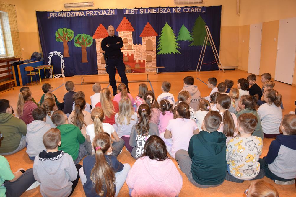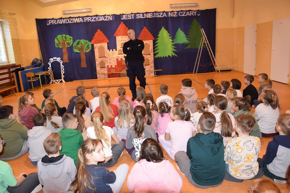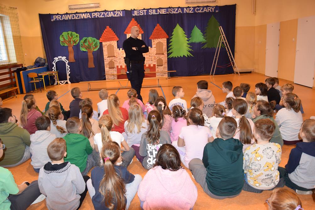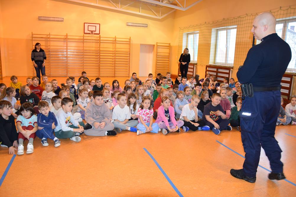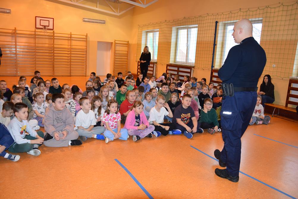 W poniedziałek 12 stycznia 2026r. w naszej szkole odbyło się spotkanie uczniów z panem policjantem. Celem spotkania było przypomnienie zasad bezpiecznego poruszania się po drogach w czasie zimowego wypoczynku, jak i bezpieczeństwa podczas zabaw na świeżym powietrzu. Po wielu wskazówkach i dobrych radach na ten temat uczniowie mieli okazję zadawać pytania panu policjantowi. Wszystkie wątpliwości zostały wyjaśnione.
