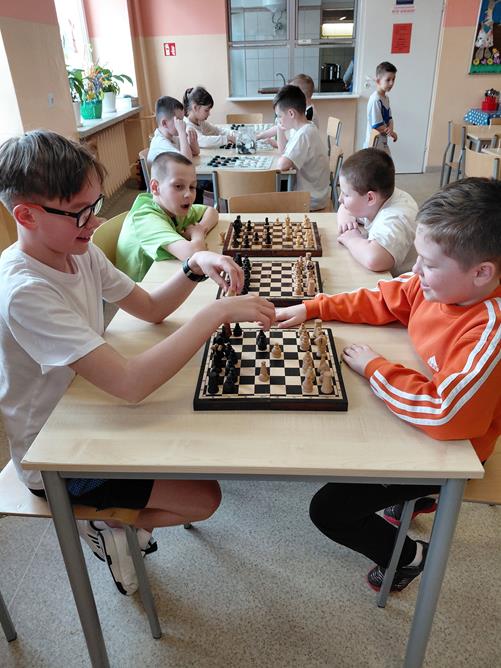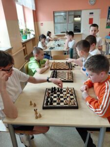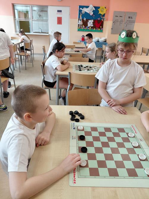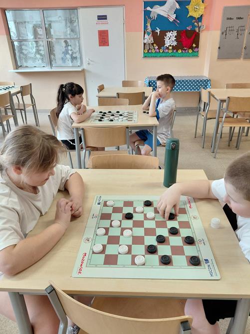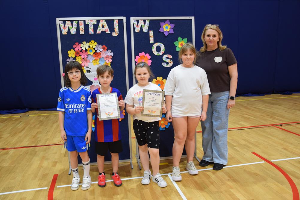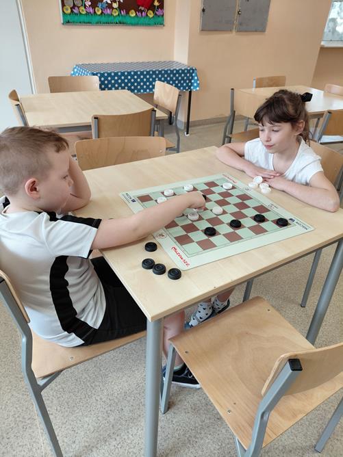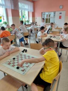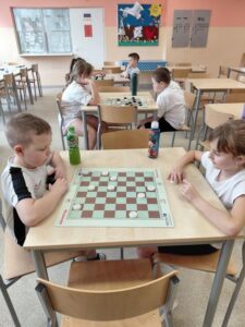 Kolejnym etapem powitania wiosny były rozgrywki sportowe przygotowane przez panie wychowawczynie równoległych klas. Do tego etapu włączyli się wszyscy uczniowie i dzielnie walczyli. Równoległe odbywały się zawody gry w szachy i warcaby. Do Turnieju warcabowego przystąpiło 17 uczniów z klas I-III – 8 chłopców i 9 dziewczynek. Po rozgrywkach wyłonili się zwycięzcy: