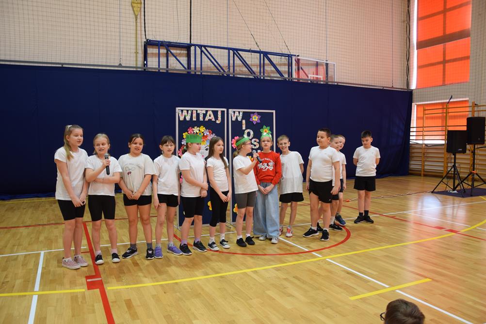 W dniu 20 marca w naszej szkole odbyło się uroczyste pożegnanie zimy i powitanie nowej pory roku czyli wiosny. Zgromadzonych na hali sportowej uczniów powitała p. Dyrektor Lidia Malinowska. Życzyła wszystkim udanego dnia, wspaniałej zabawy i wielu wspaniałych wrażeń. Przypomniała też o zasadzie fair play podczas aktywności sportowych i o tym, że nade wszystko liczy się dobra zabawa.