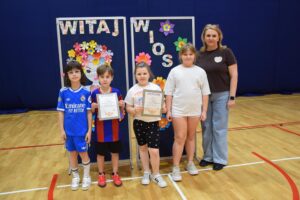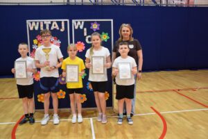 Serdeczne podziękowania należą się wszystkim paniom z edukacji wczesnoszkolnej, pani psycholog i pani ze świetlicy szkolnej za zaangażowanie w sprawny przebieg imprezy, a Pani Dyrektor za ogromne wsparcie i ufundowanie pucharu.