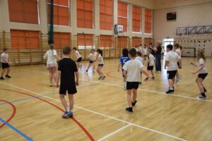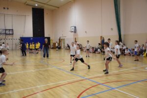 Po tym wystąpieniu nastąpiły rozgrywki w „Dwa ognie”. Wcześniej wszyscy uczniowie zostali poddani krótkiej rozgrzewce. Klasy pierwsze walczyły o I miejsce i dyplom wśród klas pierwszych. Klasy II i III walczyły o Puchar Pani Dyrektor. Po bardzo dynamicznych rozgrywkach zostały ogłoszone wyniki.