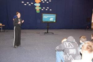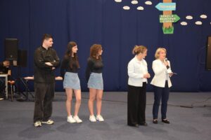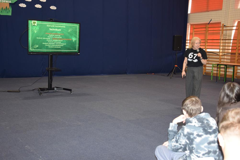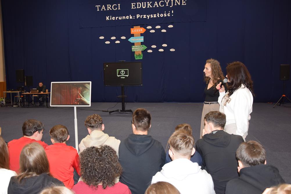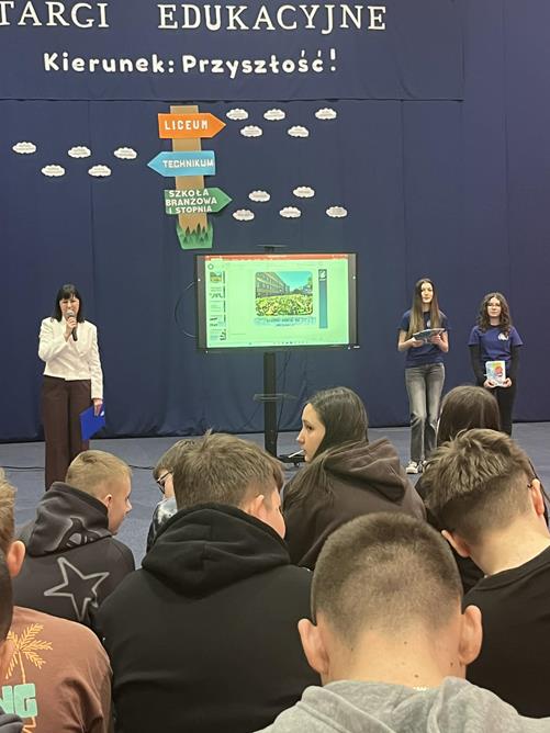Wydarzenie miało bardzo dynamiczną formę. Każda ze szkół otrzymała 10 minut na zaprezentowanie swojej oferty edukacyjnej. Dzięki temu nasi uczniowie w krótkim czasie poznali szeroki wachlarz możliwości. Podczas przerw w prelekcjach uczniowie ruszyli do stoisk, aby bezpośrednio porozmawiać z wystawcami, zadać nurtujące ich pytania i zebrać materiały informacyjne. To był czas pełen owocnych rozmów!