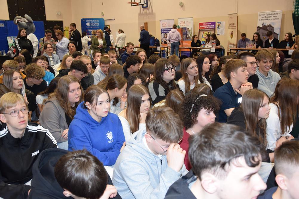 Na naszej hali sportowej zaprezentowało się aż 16 lokalnych szkół ponadpodstawowych oraz eksperci z Powiatowego Urzędu Pracy.