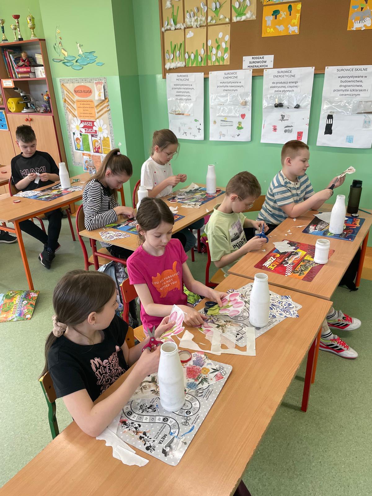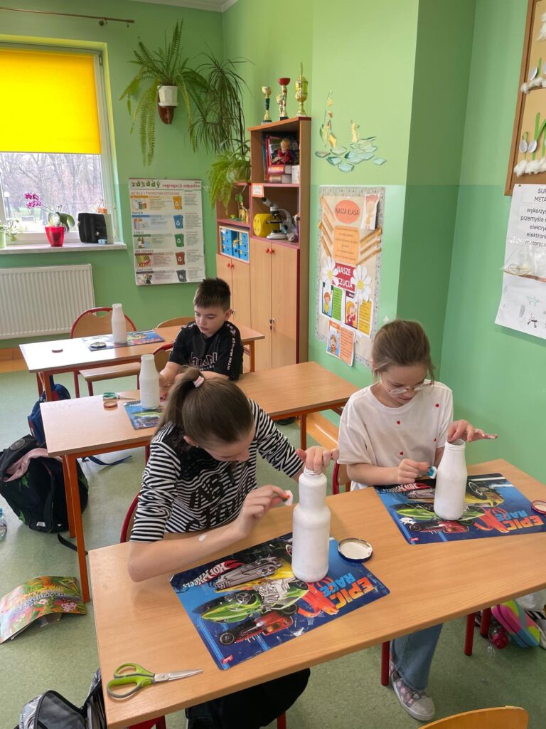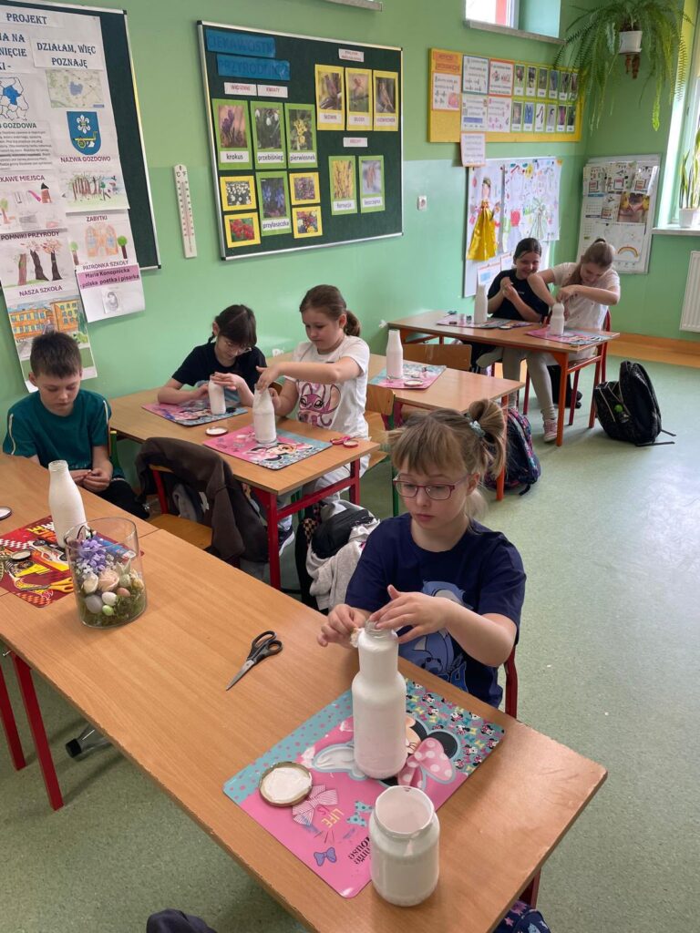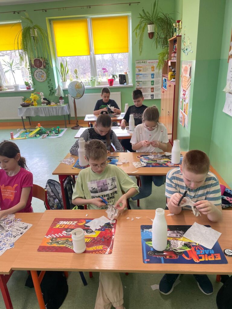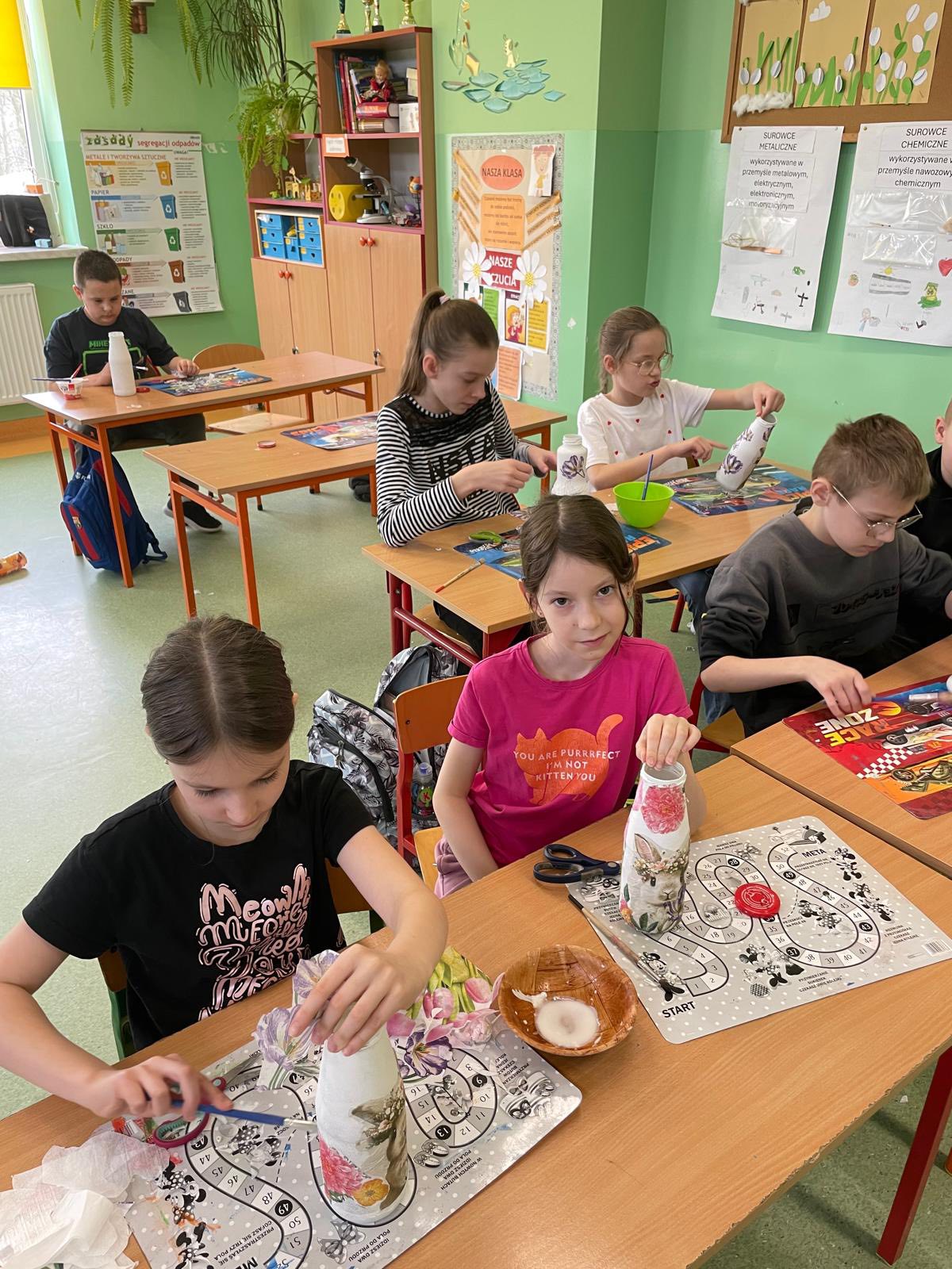 W ramach kreatywnych warsztatów uczniowie klasy 3b wykonali wiosenne wazony techniką decoupage ![]()