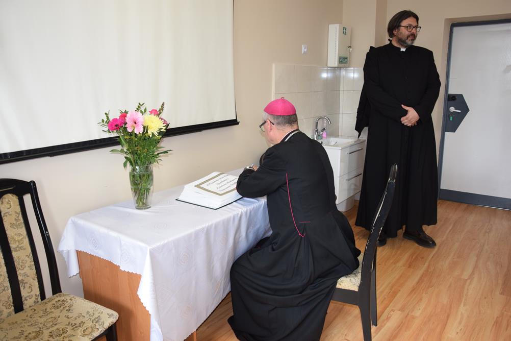 Na koniec Ksiądz Biskup odpowiedział na kilka pytań przygotowanych przez uczennice i uchylił rąbka tajemnicy ze swojego kapłańskiego życia. Potem wpisał się do kroniki szkolnej zostawiając trwały ślad dla potomnych.