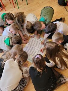 Starannie przygotowane plakaty w formie listów zostały wyeksponowane w ważnych punktach naszej gminy – w szkole, bibliotece gminnej, Urzędzie Gminy, Ośrodku Zdrowia oraz Gminnym Ośrodku Pomocy Społecznej. Inicjatywa spotkała się z niezwykle serdecznym przyjęciem – pracownicy wszystkich instytucji z życzliwością i uznaniem wsparli działania najmłodszych.
