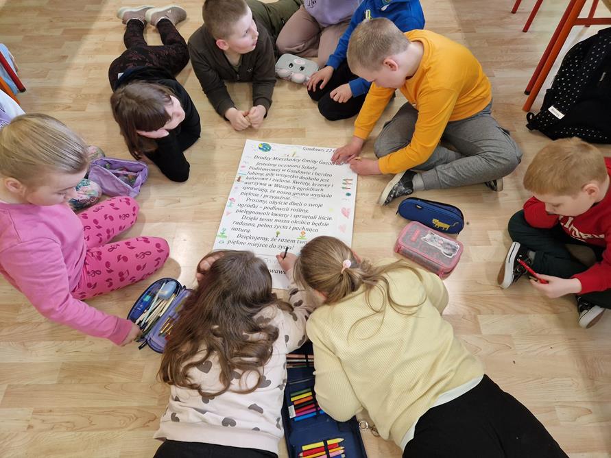 W tym roku uczniowie klas I–III, pod czujnym i życzliwym okiem swoich wychowawców, przygotowali niezwykłą inicjatywę – napisali listy skierowane do mieszkańców gminy Gozdowo. Każdy z tych listów, niczym mały apel płynący z dziecięcych serc, poruszał inny, istotny problem związany z ochroną środowiska. Pojawiły się w nich prośby o oszczędzanie wody i energii elektrycznej, o odpowiedzialne segregowanie odpadów, ograniczenie ruchu pojazdów oraz wdrażanie ekologicznych rozwiązań w codziennym życiu domowym.