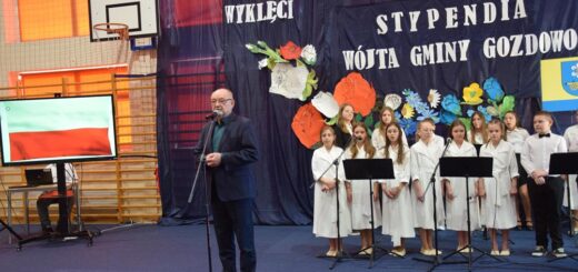 Na początku pani Dyrektor powitała zaproszonych gości: p. Jolantę Lewandowską – Sekretarza Gminy Gozdowo oraz p. Jolantę Gutowską – choreograf Zespołu Pieśni i Tańca Ziemi Gozdowskiej, wszystkich Rodziców z przewodniczącą Rady Rodziców p. Małgorzatą Smoleńską na czele, Radę Pedagogiczną i pracowników naszej szkoły, uczniów oraz wszystkich przybyłych gości. Powitała również zespół MOTIF, który zadbał o oprawę muzyczną i artystyczną uroczystości.