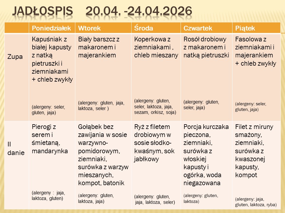 11.00 – 11.25 – zupa i II danie – dzieci sześcioletnie z przedszkola