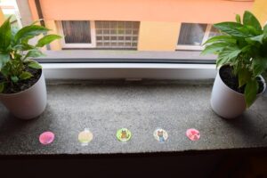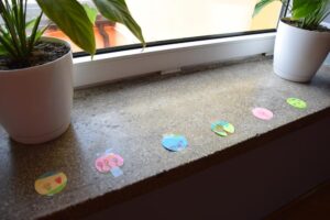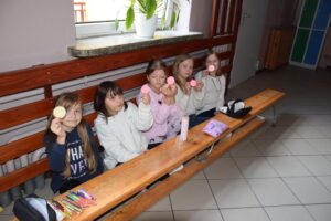 W nasze szkole, w klasach I-III w tym dniu kropki były widoczne na ubraniach wielu uczniów. Dzieci mogły też wyrazić swoje talenty na kropkach przygotowanych przez opiekuna S.U. klas młodszych, a Pani pedagog szkolna rozdała uczniom „emotikony – uśmiechnięte buźki” do przyklejenia na odzież. Kropkowe prace wyeksponowaliśmy na górnym korytarzu szkoły.