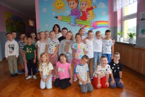 Zadanie dla uczniów w tym dniu polegało na pokolorowaniu według własnych pomysłów konturów kropek. Chętne dzieci wykazały się kreatywnością. Brawo dla Nich!