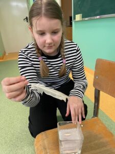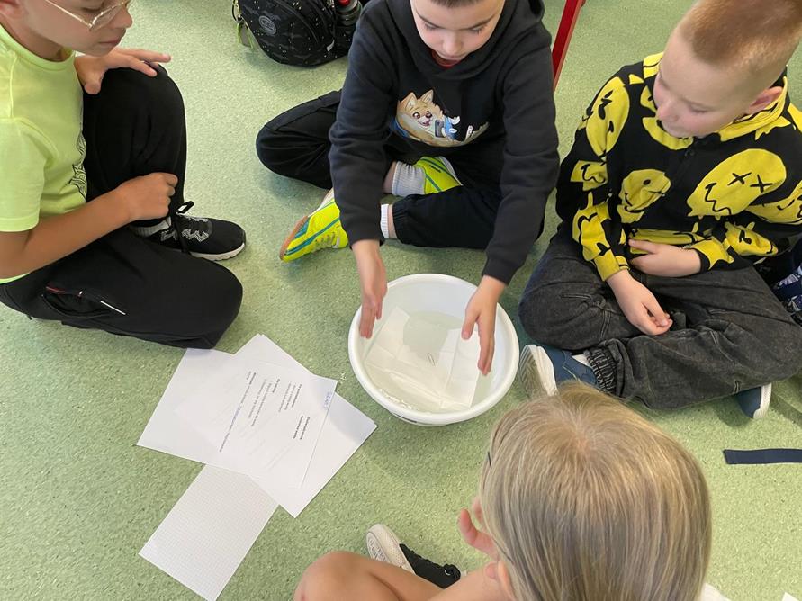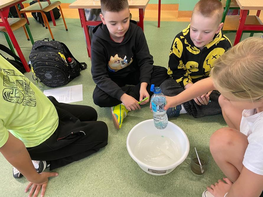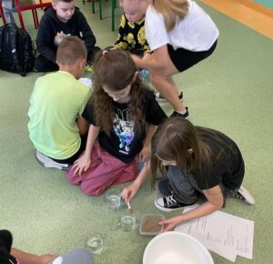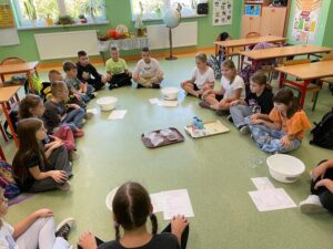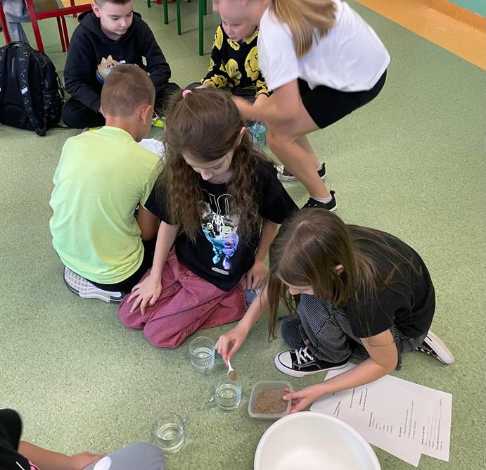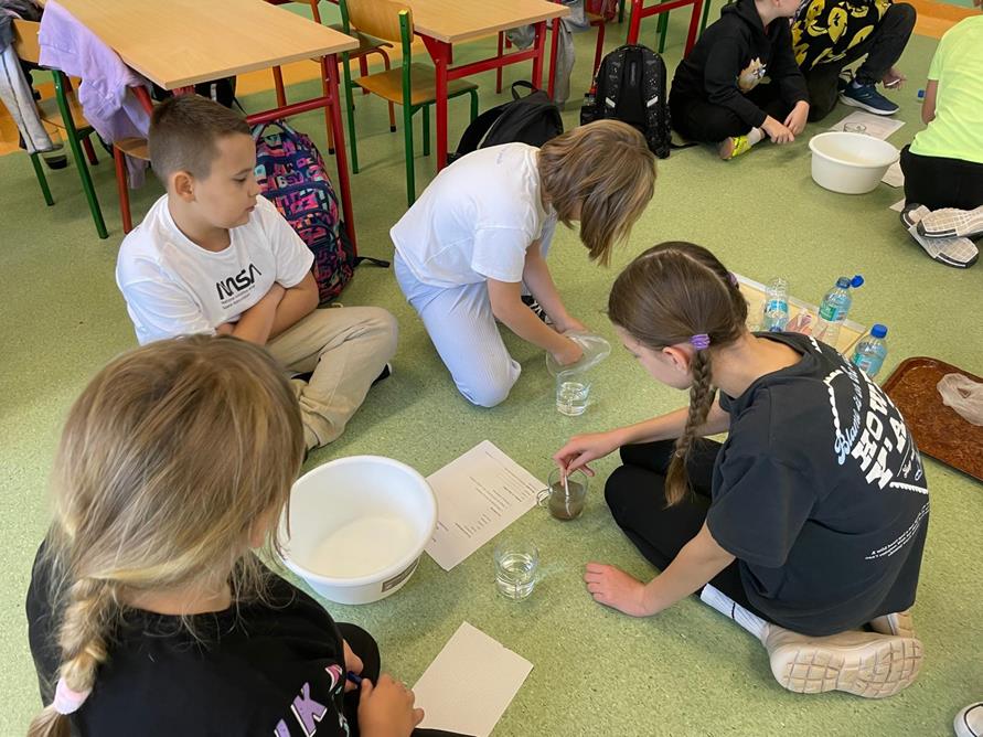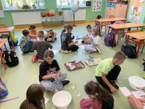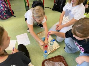 Istotnym elementem zajęć były liczne doświadczenia przyrodnicze, które pozwalały uczniom w sposób praktyczny poznawać zagadnienia ekologiczne. Dzieci badały właściwości i czystość wody, obserwowały jakość powietrza w otoczeniu szkoły oraz poznawały wpływ działalności człowieka na przyrodę. Doświadczenia były ściśle powiązane z realizowaną tematyką, m.in. dotyczącą roli lasów, znaczenia wody w przyrodzie i życiu człowieka oraz wpływu transportu na środowisko. Dzięki bezpośredniej obserwacji i samodzielnym działaniom uczniowie rozwijali umiejętność wyciągania wniosków oraz myślenia przyczynowo-skutkowego.