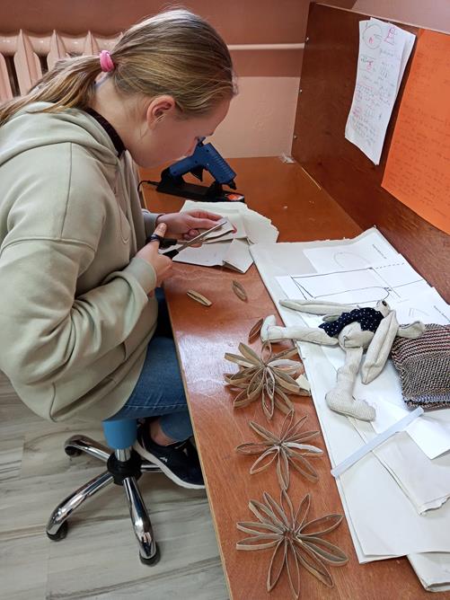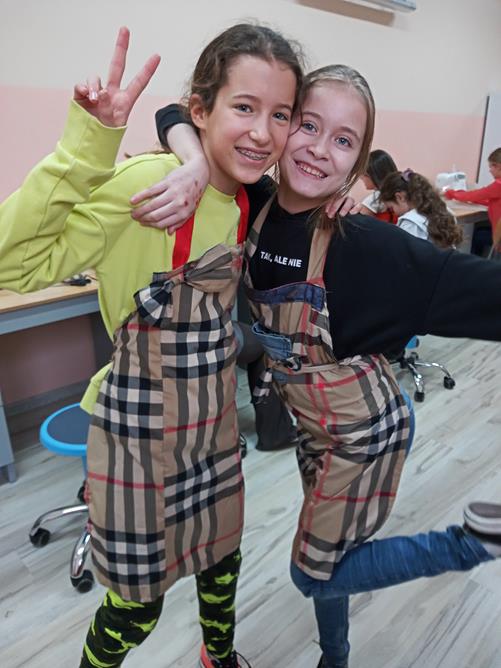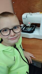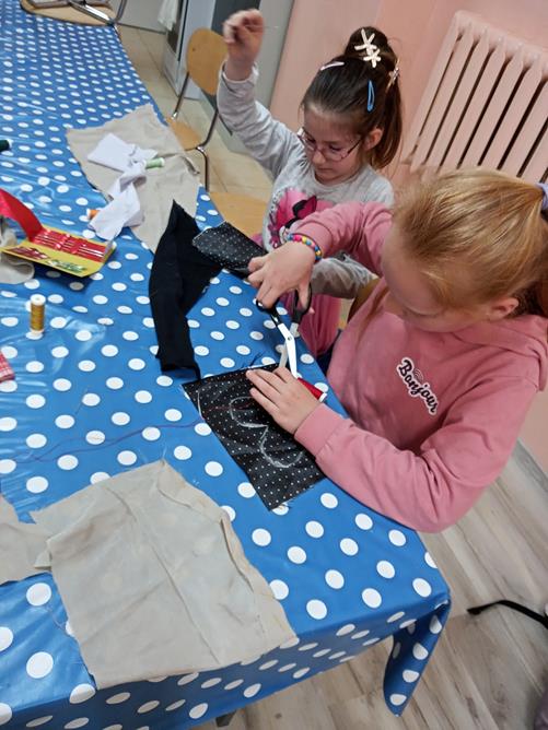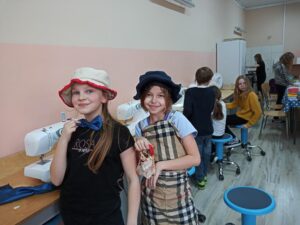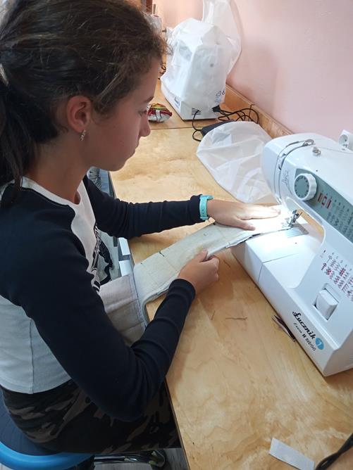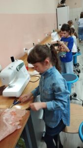 prawidłowo i bezpiecznie się nimi posługują, potrafią przygotować warsztat pracy,z ochotą wykonują prace użytkowych na potrzeby innych.Potrafia też rozpoznać i dobrać odpowiednie materiały do pracy, potrafią wykonać konstrukcję odzieży na podstawie własnych wymiarów, właściwie ciąć materiał, zszyć dwie tkaniny, zszywać  po linii, szyć proste rzeczy(torebki, opaski ,troczki, woreczki),przewlekać gumę, przewlekanie na drugą stronę paska za pomocą agrafki itp.